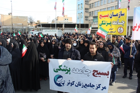 دوشنبه 22 دی ماه، به همت بسیج جامعه پزشکی کوثر، پرسنل مرکز آموزشی درمانی جامع زنان کوثر نیز همانند سایر اقشار و هموطنان در راهپیمایی عظیم اعتراضی علیه عناصر آشوبگر و تروریست بصورت گسترده حضور یافتند.